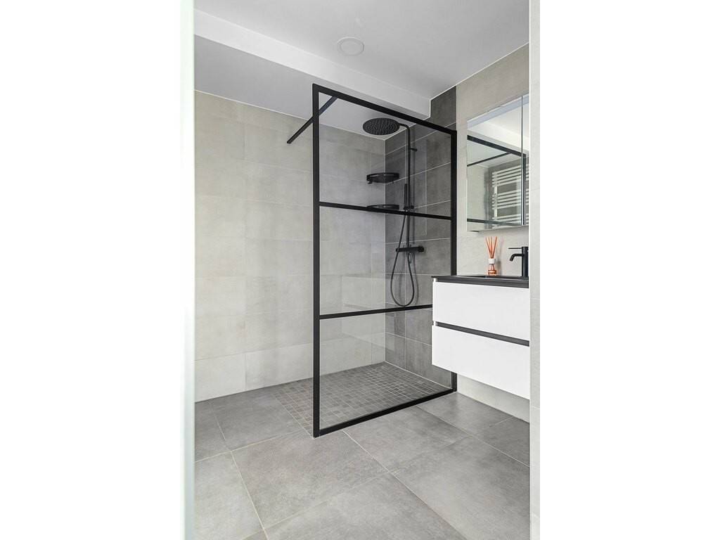 Im ersten Stock führt ein Flur zu einem Badezimmer von ± 4 m², zwei Schlafzimmern von ± 13 m² und 15 m², einem zweiten Badezimmer von ± 4 m², das zu einem Schlafzimmer gehört, sowie einer Terrasse von ± 5 m², die nach Osten ausgerichtet ist.