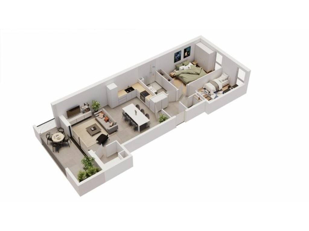 Appartement 2 chambres au rez-de-chaussée de la Résidence CAREX d’une superficie de 84,30m² avec une terrasse de 13,5m² et d'une cave de 2,3m².