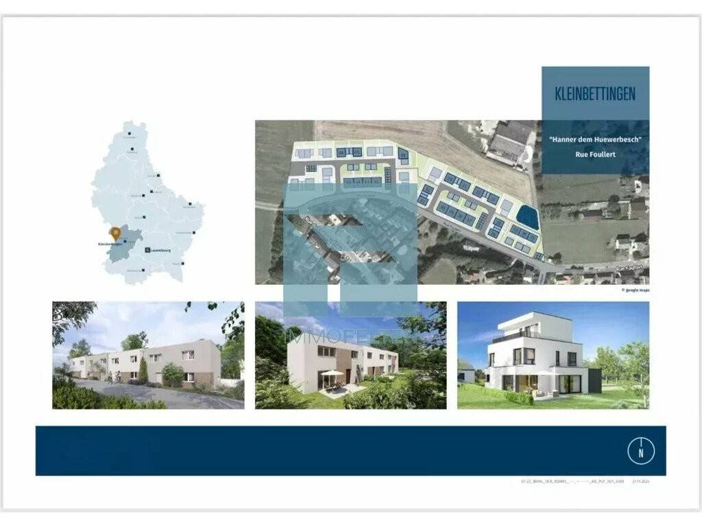 Située dans le lotissement « Hanner Dem Huerwerbesch », rue Foullert à Kleinbettigen (commune de Steinfort), cette maison mitoyenne de 129,76 m² habitables, certifiée classe énergétique A-B-A, allie confort moderne et cadre de vie agréable.