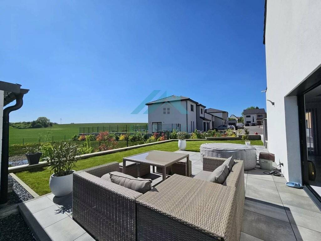 Belardimmo vous propose en exclusivité une magnifique maison individuelle construit en 2023 de 156m² habitables sur un terrain de 3 ares 86 ca et classée en A au niveau des performances énergétiques( encore sous garantie décennale), située dans un nouveau quartier résidentiel à Hussigny-Gobrange, proche de la nature et à 5 min de la frontière Luxembourgeoise.
