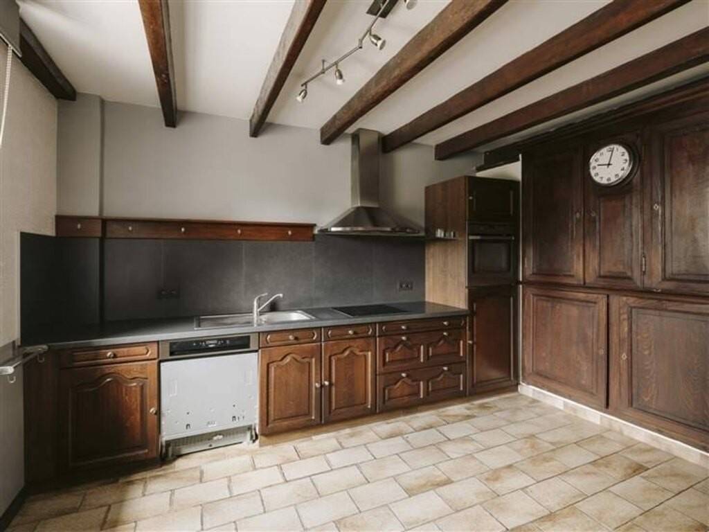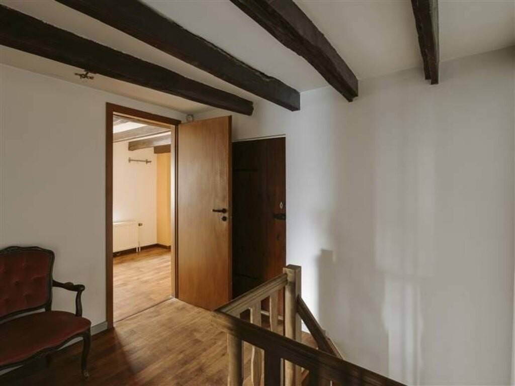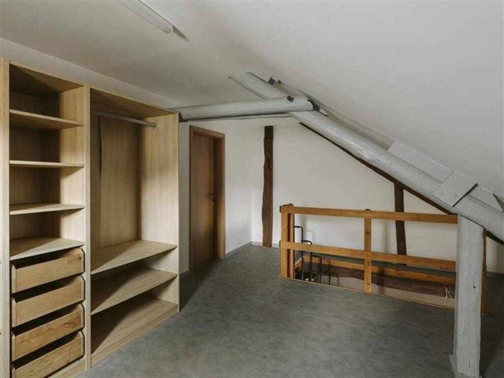 Côté maison, entrant par un hall, vous découvrirez un coin repas, une cuisine équipée, un espace bar, ainsi qu'un grand living de 30m² et une chaufferie. Au 1er étage, le hall de nuit dessert 1 chambre, un bureau, ainsi que la salle-de-bain avec bain/douche, deux éviers et WC. Une chambre supplémentaire sous charpente vous attend au dernier étage, ainsi qu'un grenier aménageable.
