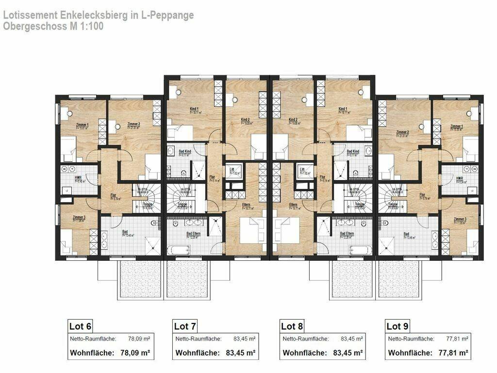 Die Grundstücksgrößen betragen 2,81 ar bis 3,94 ar.