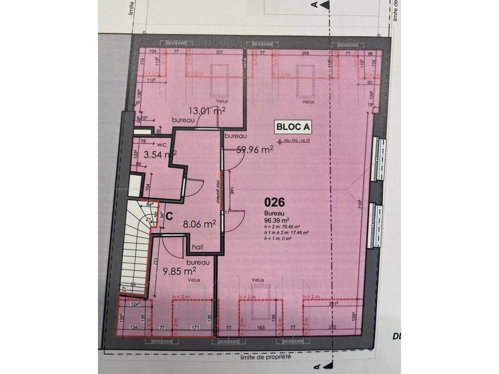 - 2ème étage: divers espaces de bureaux et WC séparé.