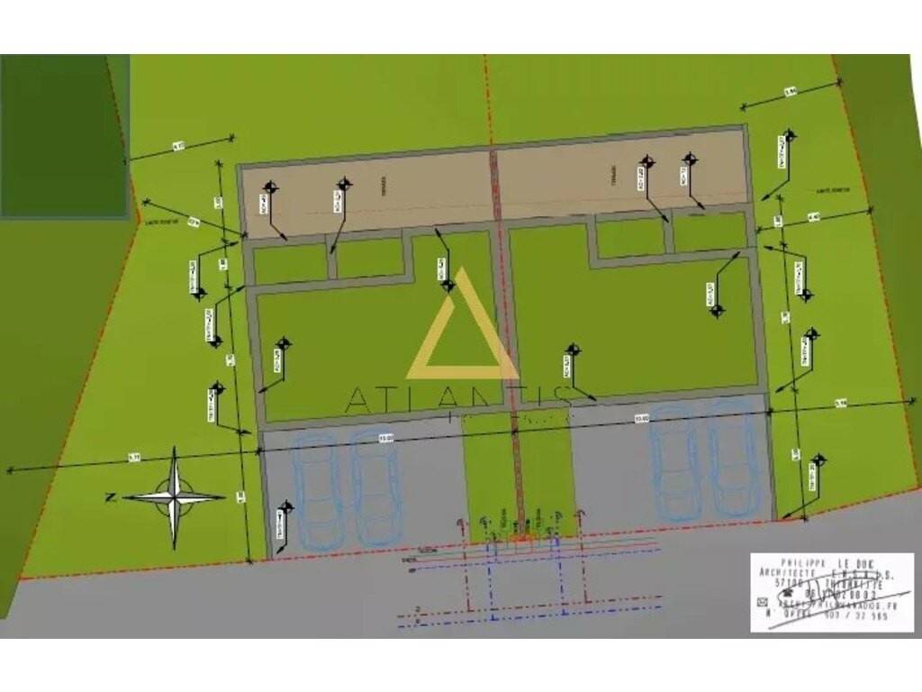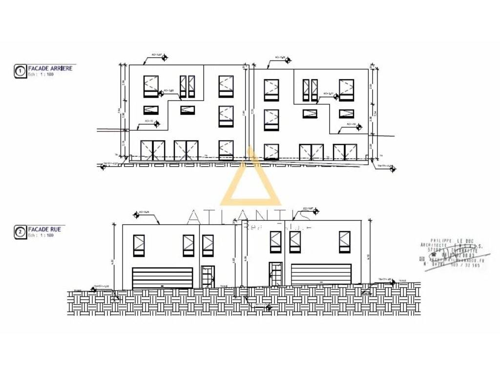 Le permis de construire actuel autorise la construction d'un ensemble immobilier composé de deux maisons jumelées modernes et fonctionnelles. Chaque maison bénéficierait d'une surface habitable généreuse de 110 m², complétée par un garage privatif de 29,30 m², idéal pour une famille ou un investissement locatif/revente.