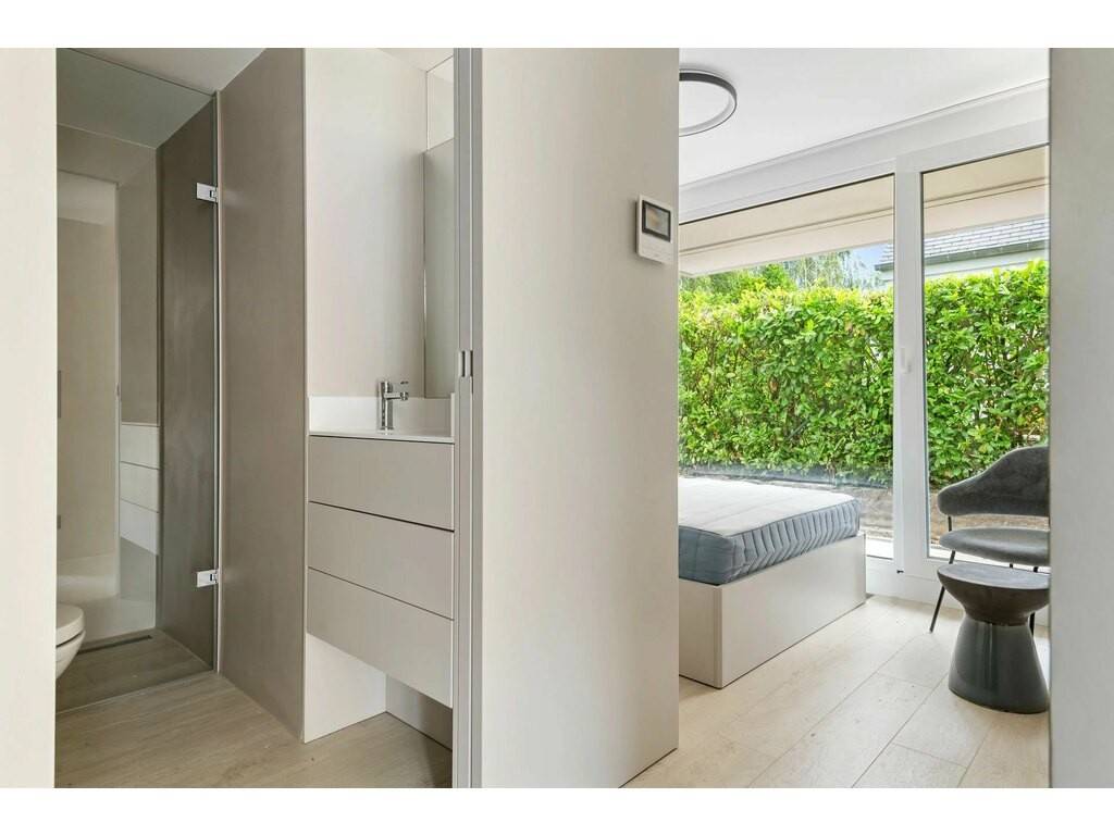 A large living space with a fully equipped kitchen offering access to a garden and a large terrace combined with a lounge area with flat-screen TV and cosy sofas. A big gym fully equipped with a bathroom as well as a laundry room and a large cellar for your bulky stuff