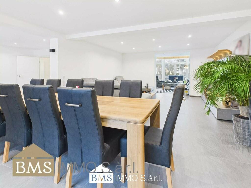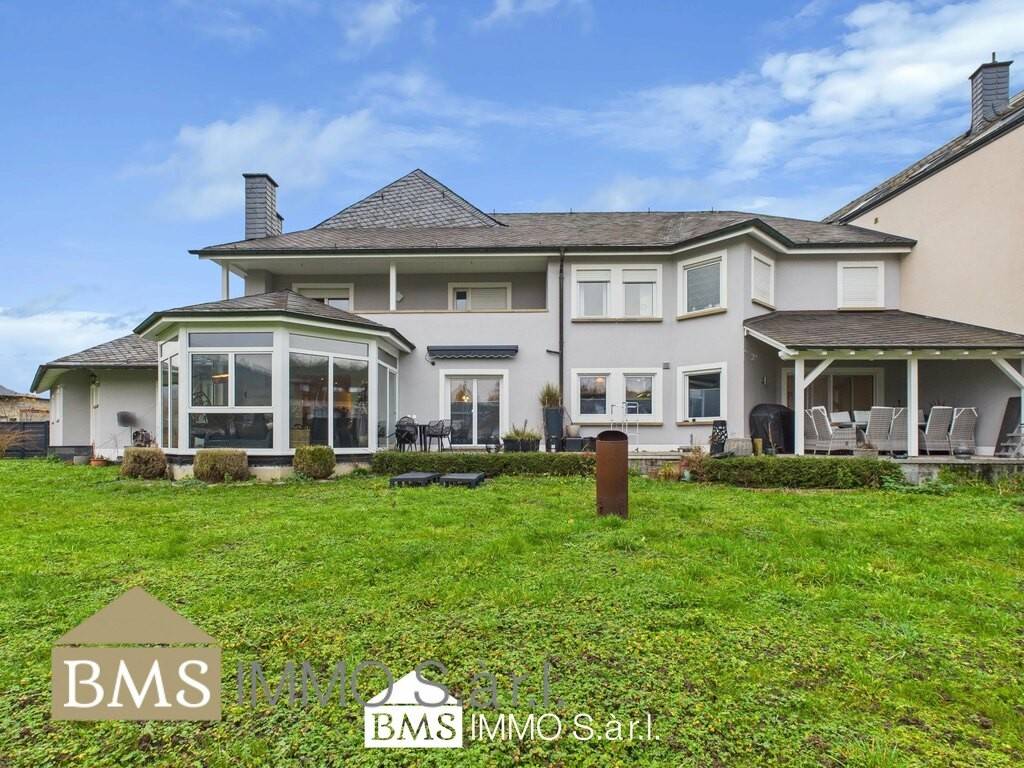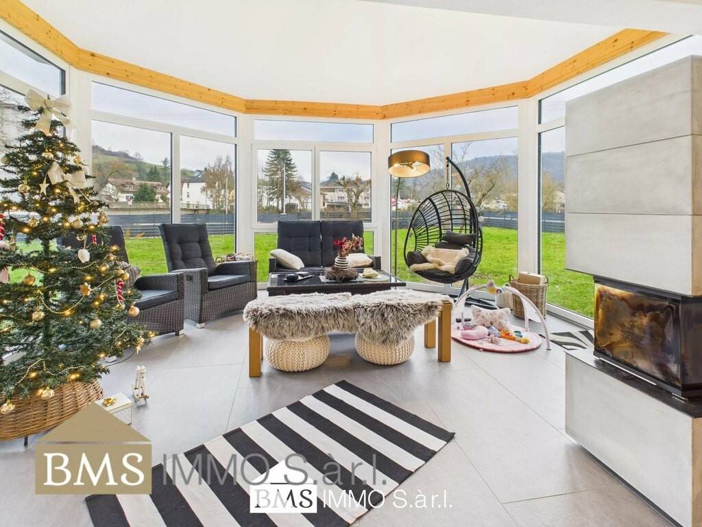 Entdecken Sie dieses wunderschöne Einfamilienhaus in Irrel, das mit seinen 312 m² Wohnfläche und einer durchdachten Raumaufteilung beeindruckt. Das Haus bietet auf zwei Etagen viel Platz für eine große Familie. Besonders hervorzuheben ist das lichtdurchflutete Wohnzimmer und der angrenzende Wintergarten mit einem Kamin, der für eine gemütliche Atmosphäre sorgt. Große Fenster und dreifach verglaste Scheiben im Erdgeschoss garantieren optimale Energieeffizienz und lassen viel natürliches Licht herein. Die großzügigen Räumlichkeiten schaffen ein ganz besonderes Flair und bieten eine luxuriöse Umgebung. Die hochwertige Einbauküche ist mit allen relevanten Elektrogeräten ausgestattet und verfügt über einen großen angrenzenden Abstellraum.