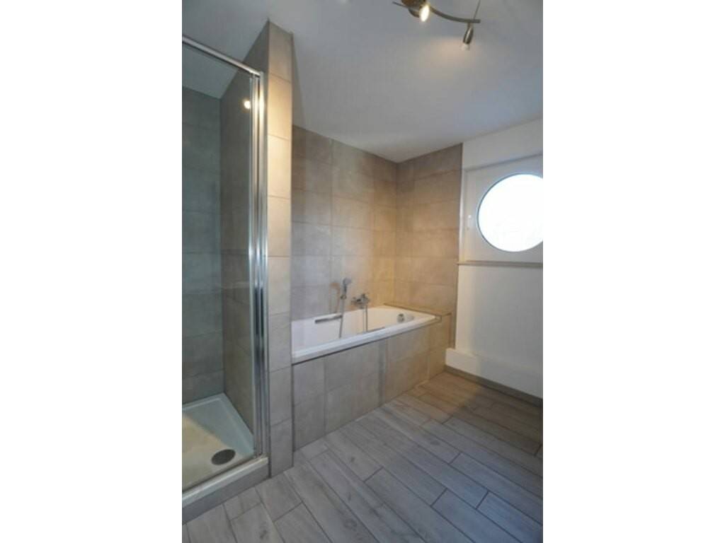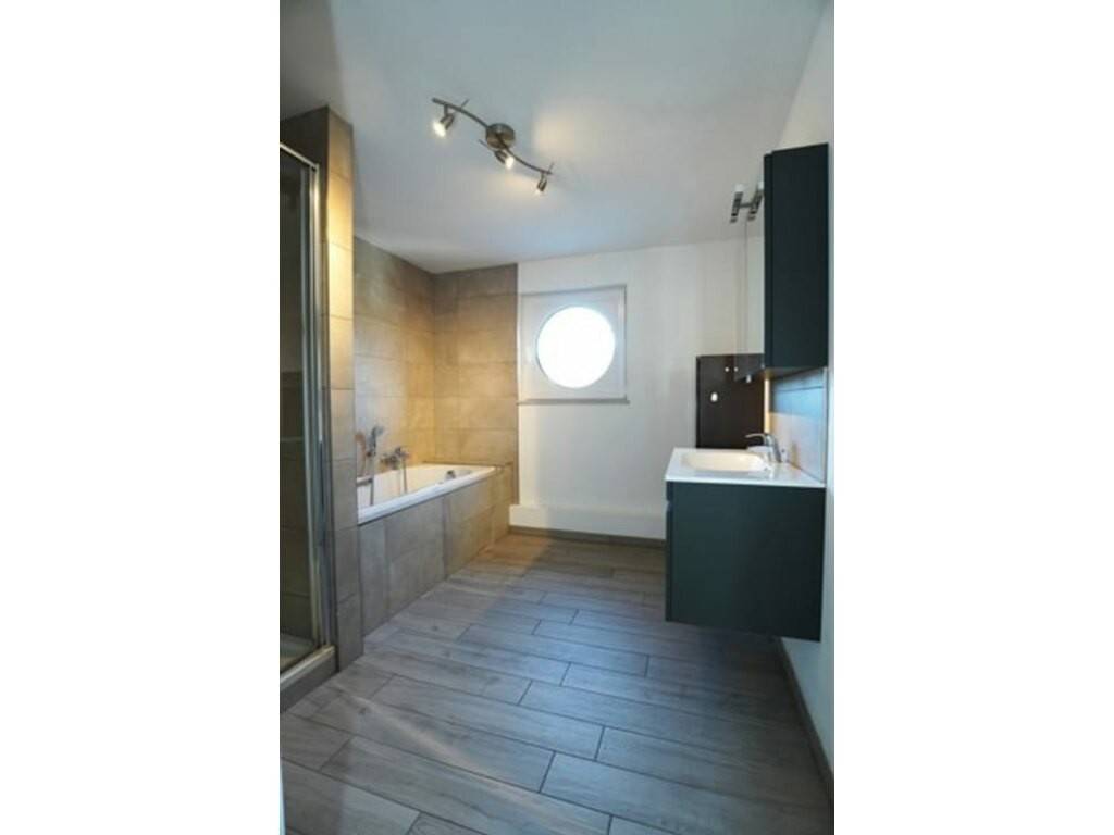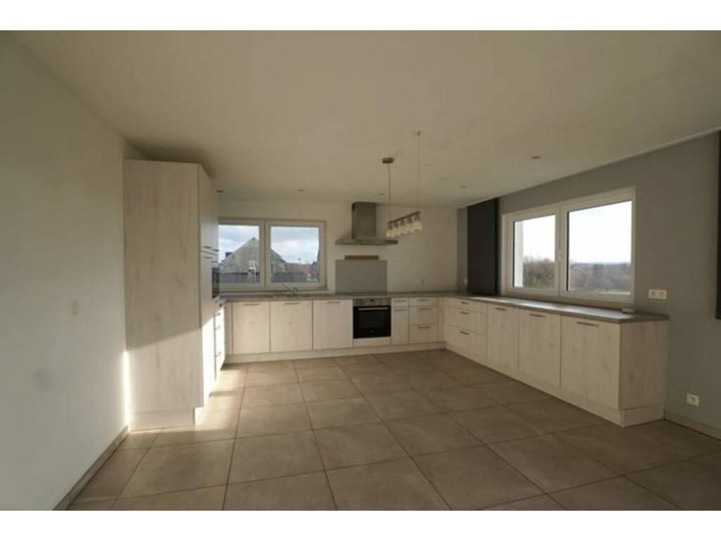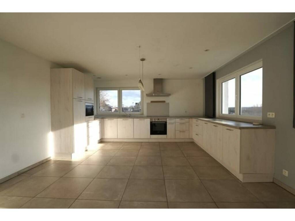 Hall d'entrée, grand séjour très lumineux avec accès direct à la belle terrasse, cuisine entièrement équipée, buanderie avec accès pour machine à laver ainsi que la pompe à chaleur, bureau, hall de nuit, wc séparé, 2 belles et grandes chambres à coucher de 19 et 20 m² et une salle de bain moderne équipée d'un bain, d'une douche et d'un meuble lavabo.