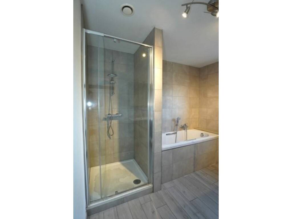 L’appartement, entièrement équipé, dispose également d’une magnifique terrasse en pierre bleue offrant une vue panoramique sur la nature, ainsi que de deux emplacements de parking.