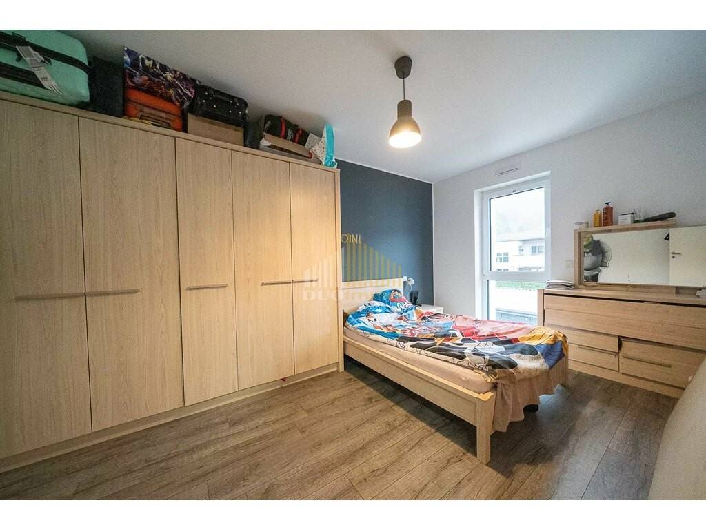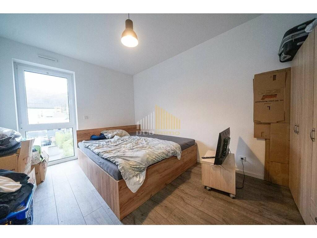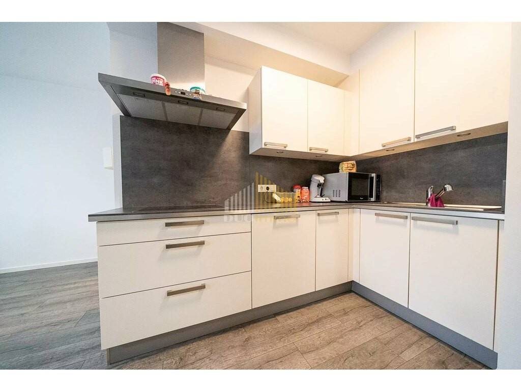 Die Wohnung verfügt über zwei gut geschnittene Schlafzimmer, ein modernes Badezimmer mit ebenerdiger Dusche sowie einen offenen Wohn- und Essbereich mit integrierter Küche, der viel Platz für Wohnen und Entspannen bietet. Große Fenster sorgen für reichlich Tageslicht.