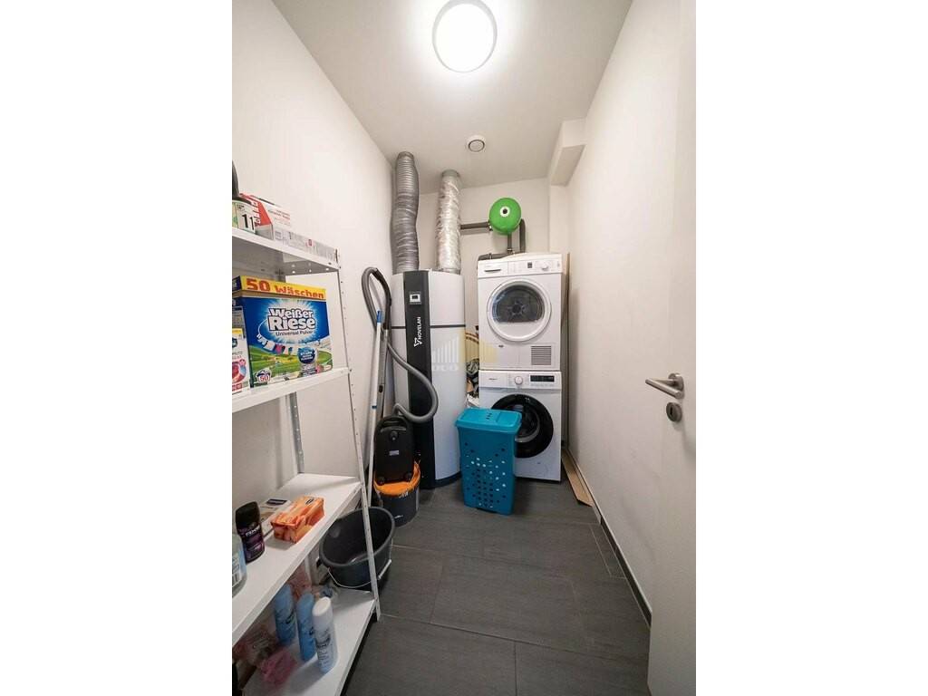 Ein separater Abstellraum mit Anschluss für Waschmaschine und Trockner bietet zusätzlichen Komfort und Stauraum.