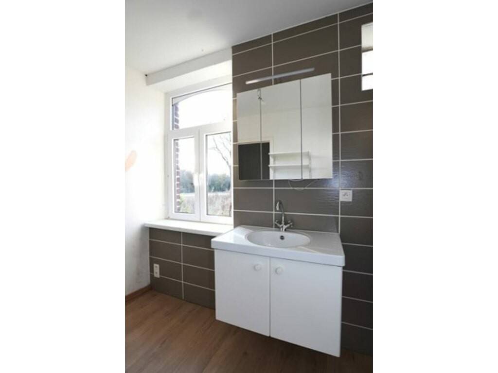 L’étage est composé d’un hall de nuit, d’un wc séparé, d’une grande chambre à coucher et d’une salle de bain équipée d’une douche, d’un lavabo et des accès pour machine à laver.