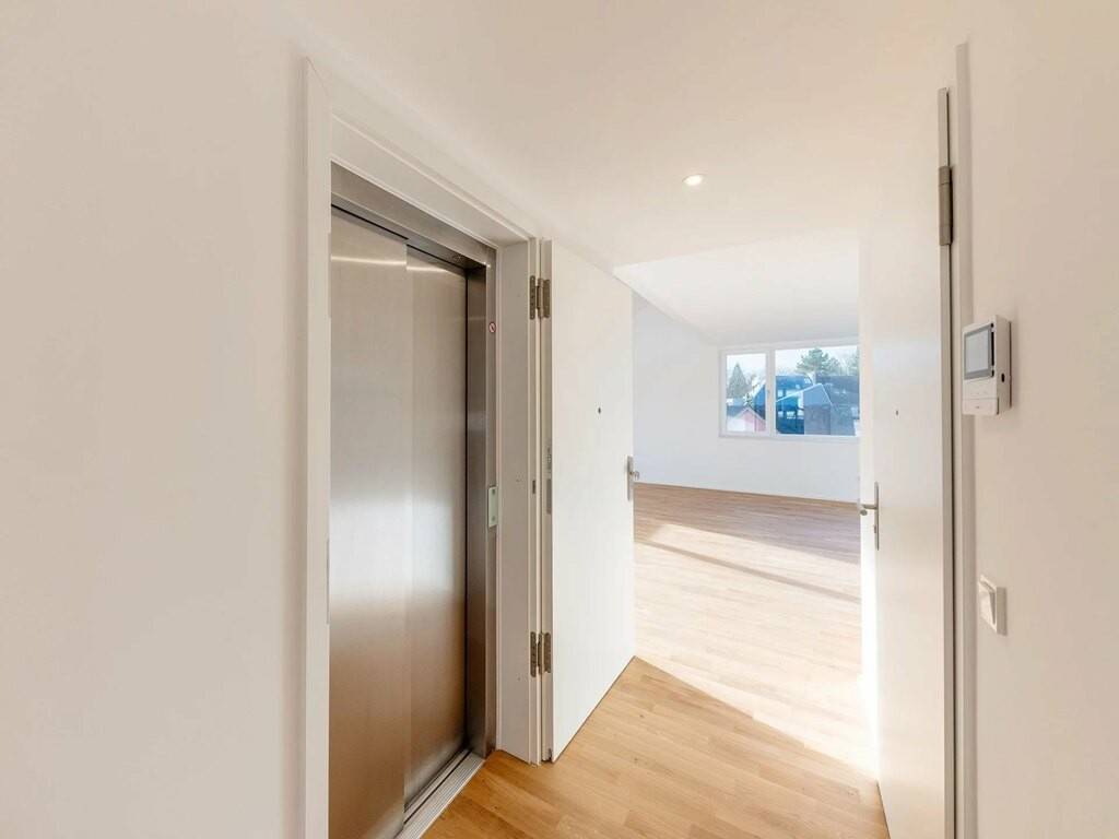 The new residence offers high-end amenities: elevator, large triple-glazed windows with wood-aluminum frames, underfloor heating, electric aluminum slat blinds, and double-flow ventilation.