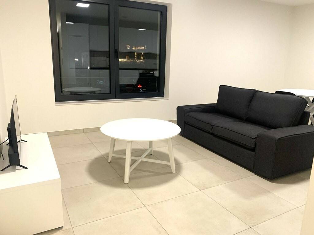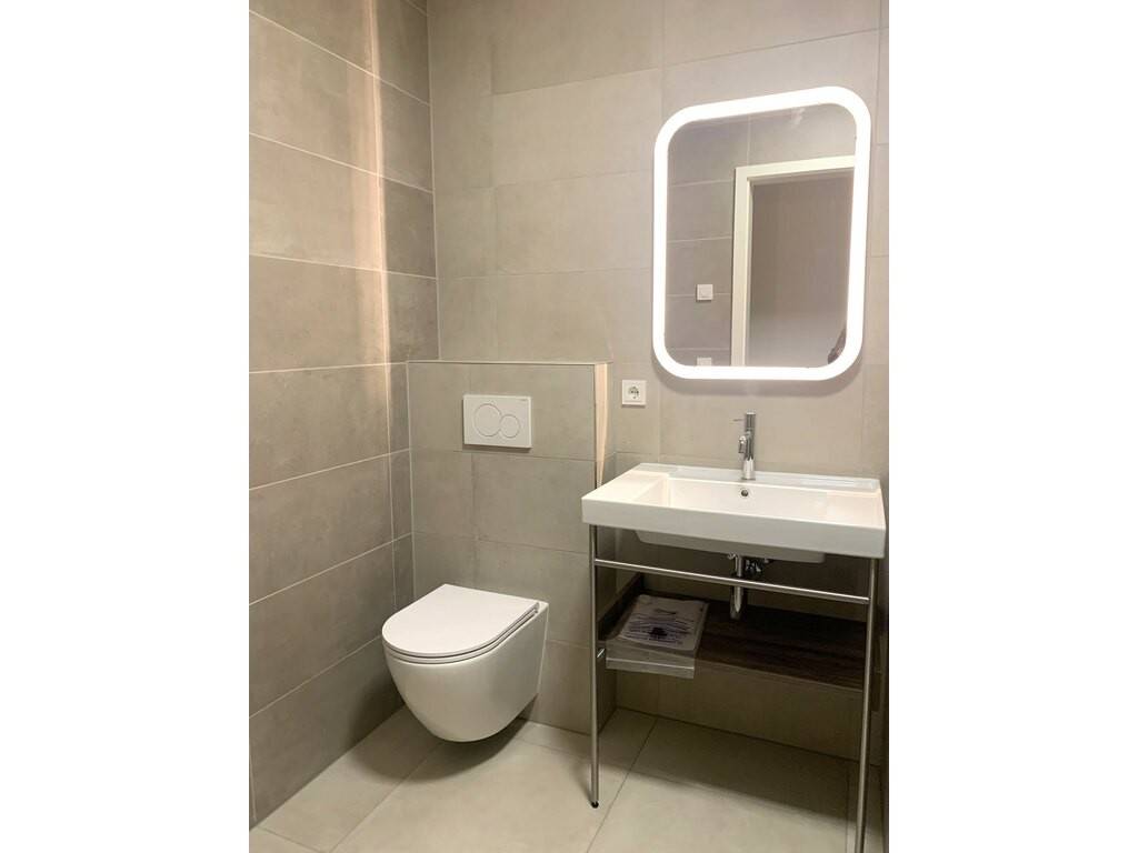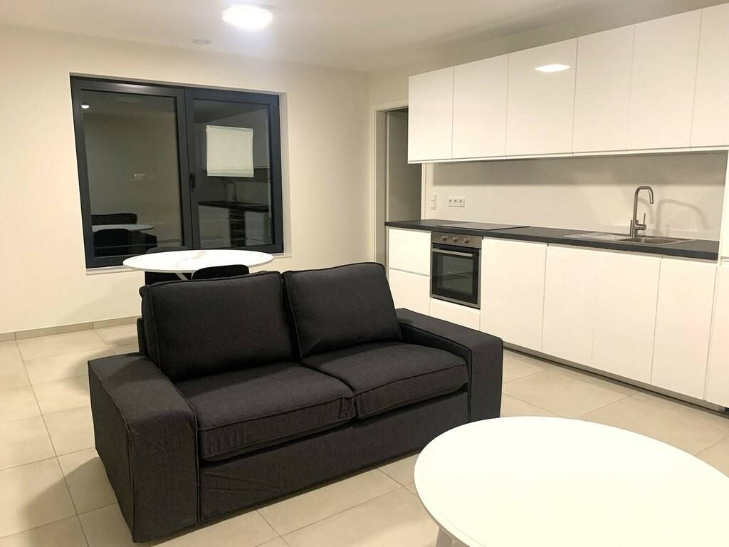 Located at 5, rue des Champs in Bertrange, on the 1st floor of a new residence with an elevator, this 48 m² furnished apartment is composed as follows:
