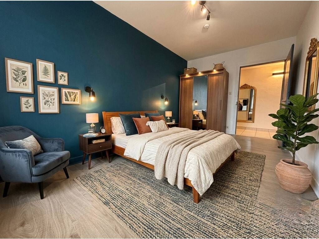 L'appartement se compose d'une entrée couloir, d'une cuisine équipée Mobalpa de 15,51m², d'un salon-séjour double de 25,72 m² avec poêle à bois, deux chambres à coucher dont une de 21,85 m² avec dressing et une de 13,04 m², un bureau, une salle d'eau avec fenêtre ainsi qu'un wc individuel.