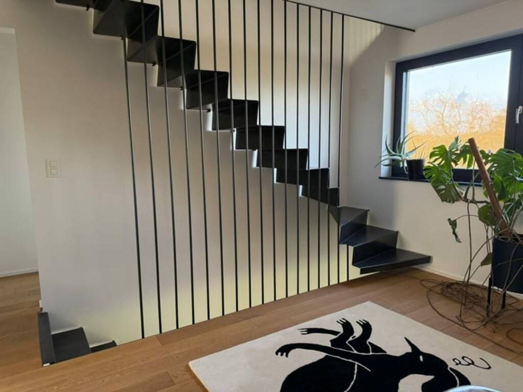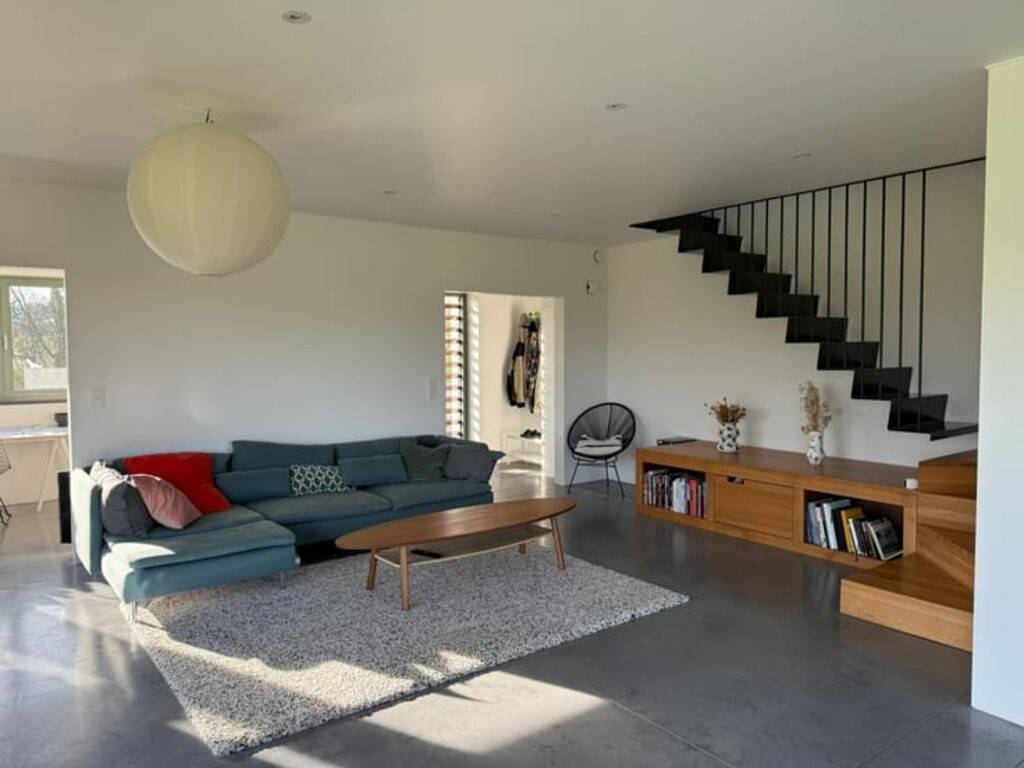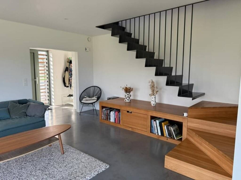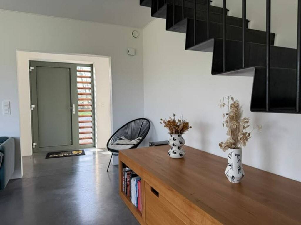 Située à Breuvanne, dans une rue préservée de la circulation et du bruit, cette superbe maison est disponible à la location à partir du 1er février prochain. Elle saura vous séduire par l'ensemble de ses aspects esthétiques, sa luminosité, et son espace. L'environnement dont on profite est également un point clé. La maison se compose d'un hall d'entrée, avec wc, un vaste salon-séjour, ouvert sur la cuisine ainsi qu'un très agréable bureau pour une opportunité de télétravail avec vue sur la campagne. Egalement au rez-de-chaussée une buanderie et un garage. La pièce maitresse est ce sublime escalier suspendu, qui traverse la maison sur les trois niveaux. Le hall de nuit conduit à une suite parentale avec dressing, deux chambres et une salle de bains complète. A second, sous comble, une grande pièce qui pourrait être une chambre supplémentaire, et un petit grenier technique. Terrasse en bois, jardin très joli avec vue sur la campagne. Robot-tondeuse. L'ensemble est harmonieux. On ressent qu'il y fait bon vivre ! Visites sur RDV / demandez notre fiche candidature au préalable !