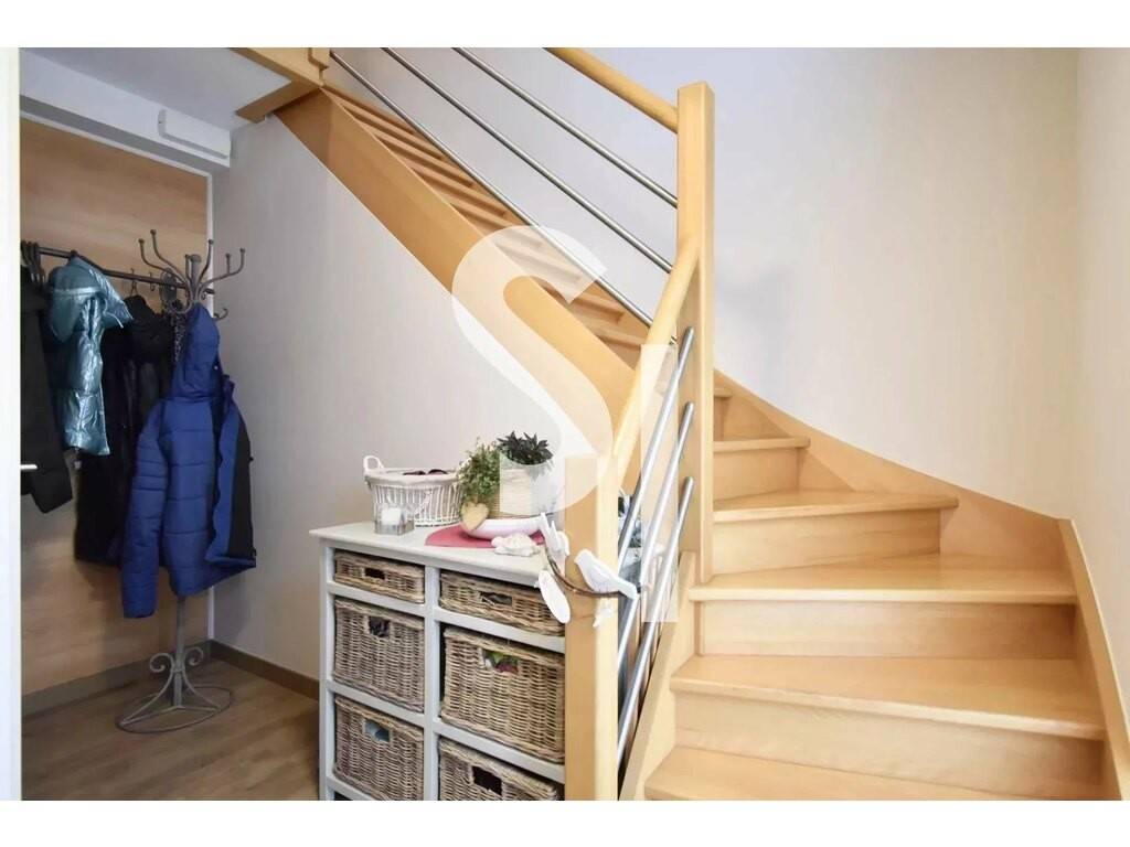 Le rez-de-chaussée accueille un hall d’entrée donnant accès à un vaste séjour lumineux bénéficiant d’une belle ouverture sur la terrasse et le jardin. La cuisine équipée, agencée de manière pratique, offre un espace convivial et adapté à la vie quotidienne. La maison comprend également trois chambres confortables, une salle de bain avec toilette intégrée ainsi qu’une toilette séparée, une buanderie fonctionnelle, une cave et un garage privatif.