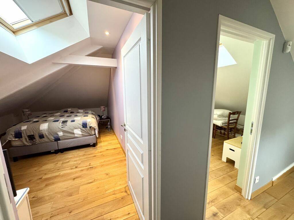 hall de nuit, 2 chambres à coucher dans les combles avec chacune une surface au sol de +-19,50m2, débarras.
