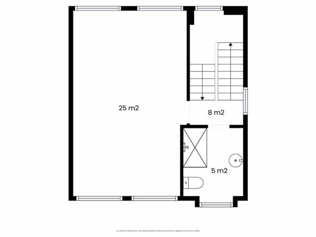 Au 1er étage : une salle de douche avec W.C., ainsi que la chambre parentale de 26m² avec son balcon privatif ;