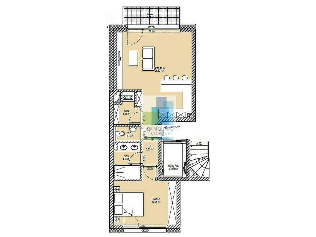 - Un balcon pour profiter des beaux jours en extérieur. - Une chambre - Une salle de douche et un WC séparé pour plus de commodité. - Un débarras pratique et une cave pour optimiser le rangement.