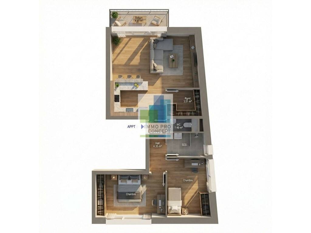 Avec une surface utile de 69,84 m² (hors terrasse), il a été pensé pour votre confort et votre bien-être. Profitez d'une belle pièce de vie lumineuse avec une cuisine ouverte et un accès direct à la terrasse.
