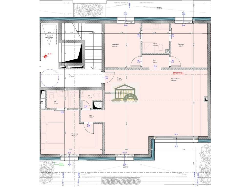 Immo Guy Flener vous présente, au sein de la Résidence Manchester à Steinfort, ce penthouse d'exception situé au deuxième étage, offrant une généreuse surface utile de 111,91m². Ce bien prestigieux se distingue par deux vastes terrasses privatives, d'une surface de 26,19 m² et 12,48 m², une terrasse plein sud, baignée de soleil, parfaite pour les moments de convivialité, et une terrasse au nord, offrant une fraîcheur élégante et un cadre paisible. Une surface de verdure supplémentaire est aménagée sur la terrasse s'élève à 4,14 m². Les surfaces des terrasses sont indiquées à titre informatif et ne sont pas comprises dans la surface habitable des appartements. La surface totale vendable pondérée s'élève à 133,315m². Les caves privatives sont incluses dans le prix de vente. À titre d'exemple, l'appartement dispose d'une cave d'une surface de 6,76 m², offrant un espace de rangement pratique et fonctionnel. L'agencement haut de gamme comprend trois chambres à coucher, dont une avec salle de bain attenante et une salle de bain accesible en direct par les deux autres chambres, ainsi qu'un WC séparé, répondant aux exigences les plus élevées en matière de confort, d'espace et de fonctionnalité. Le prix de vente total s'élève à 1.259.759,02 €, TVA à 3 % incluse.