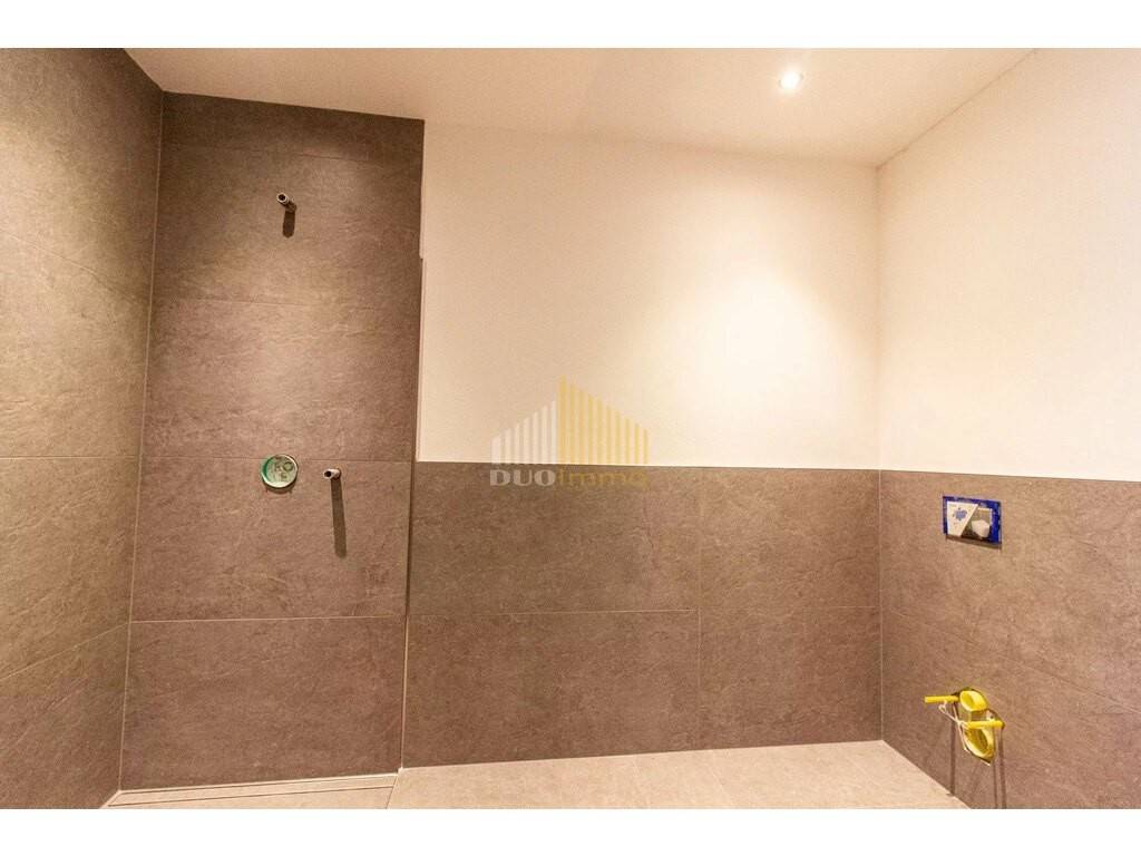 Das modern ausgestattete Badezimmer mit Hauswirtschaftsbereich (ca. 9,04 m²) vereint Komfort mit Funktionalität und bietet Platz für Waschmaschine und Trockner. Ergänzt wird das Raumangebot durch einen separaten Abstellraum (ca. 1,87 m²), der zusätzlichen Stauraum schafft.