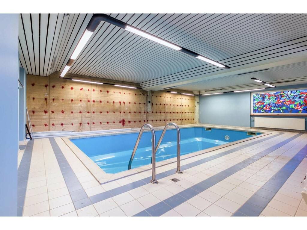 Im linken Flügel befindet sich ein Wellnessbereich mit Dusche, Toilette und einem Innenpool, der sich zum Garten hin öffnet, sowie ein Umkleideraum und ein Lagerraum.