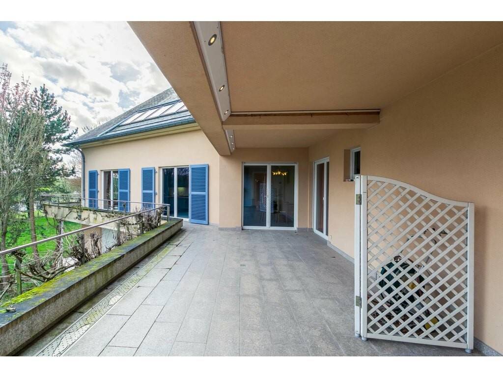 Umgeben von Grün haben alle Räume im Erdgeschoss Zugang zu einem Außenbereich, sei es eine Terrasse, ein Balkon oder der Garten.