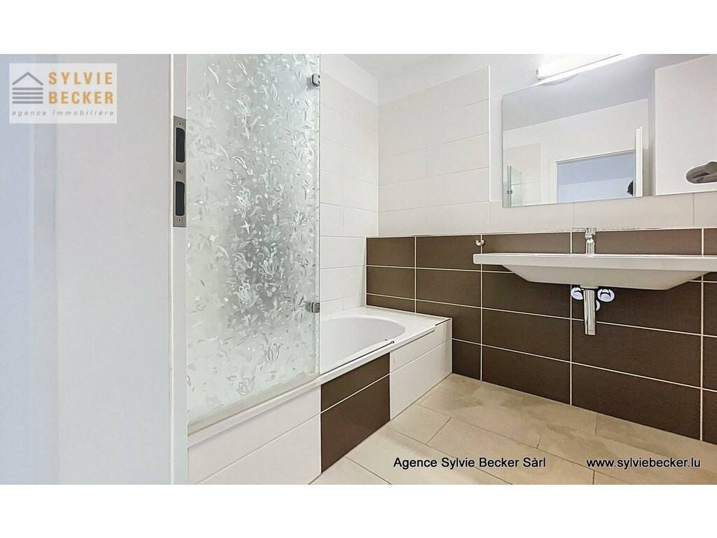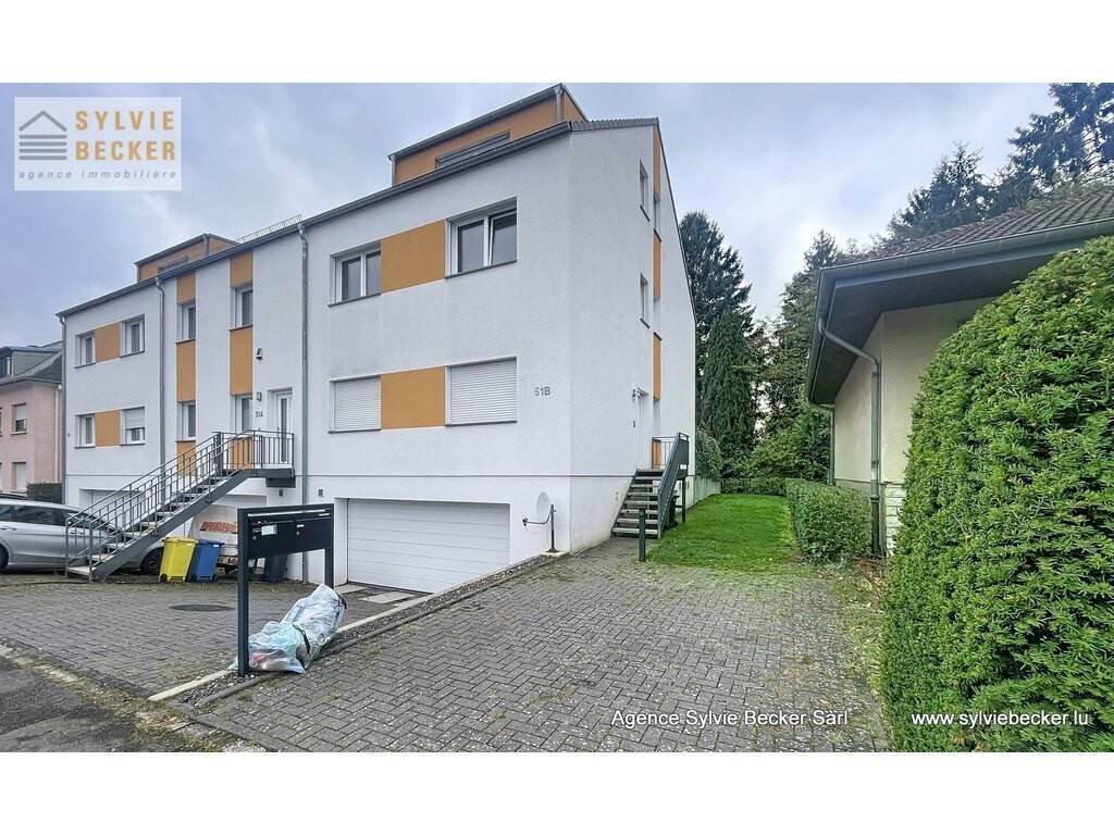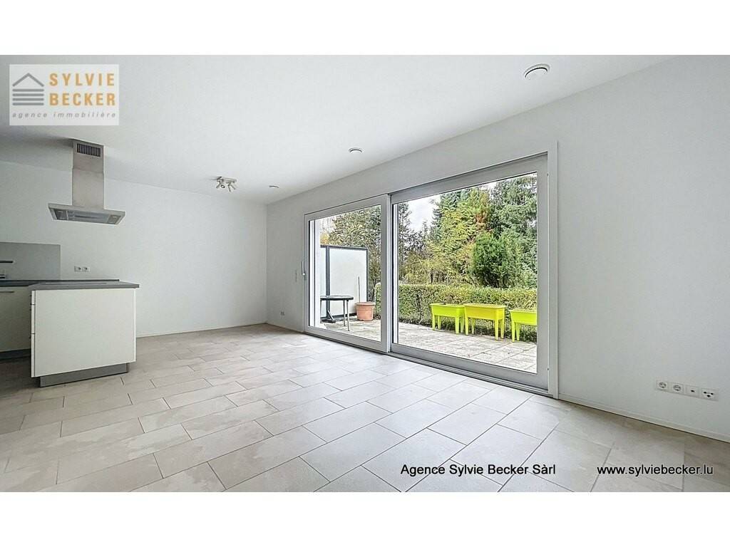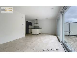 Spacious (63m²) and bright apartment on the ground floor with 1 bedroom (bedroom with office area), living room with open kitchen, terrace, garden, and indoor parking space. The apartment is located at the rear of a residence in Bridel at 51 Rue de Schoenfels L-8151. The residence is located 500m from bus stops.