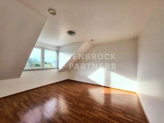 Im Obergeschoss liegen die vier Schlafzimmer und das Badezimmer mit Dusche, Badewanne, zwei Waschbecken und einer Toilette. Neben den Wohnräumlichkeiten, befindet sich noch ein ausziehbarer Dachboden auf diesem Stockwerk.