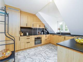 The double exposure of the living room to the south and the kitchen/dining room to the east ensures that the living space is bright and luminous throughout the day, while the exceptional view over the surrounding greenery promises moments of calm and serenity.