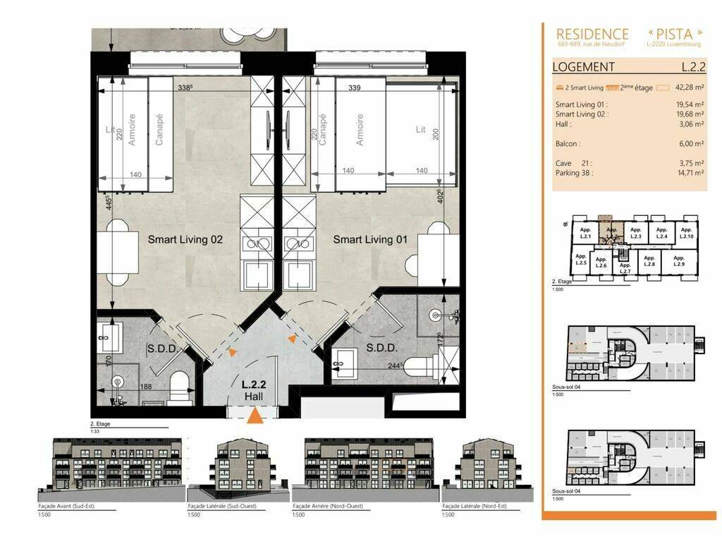 Die Immobilie liegt in einer modernen Wohnanlage in Luxemburg-Neudorf, in einem gefragten Wohnumfeld nahe öffentlicher Verkehrsmittel, Einkaufsmöglichkeiten und sämtlicher Annehmlichkeiten, bei gleichzeitig guter Anbindung an das Stadtzentrum.