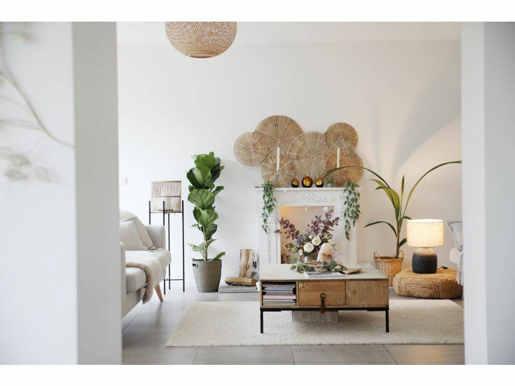 A ground floor including beautiful open living spaces (living room; dining room; kitchen: office); a guest bedroom with shower room; a laundry room; a separate toilet and a garage for 1 car. The large terrace of 40m² is accessible from the living room, the office and the bedroom.