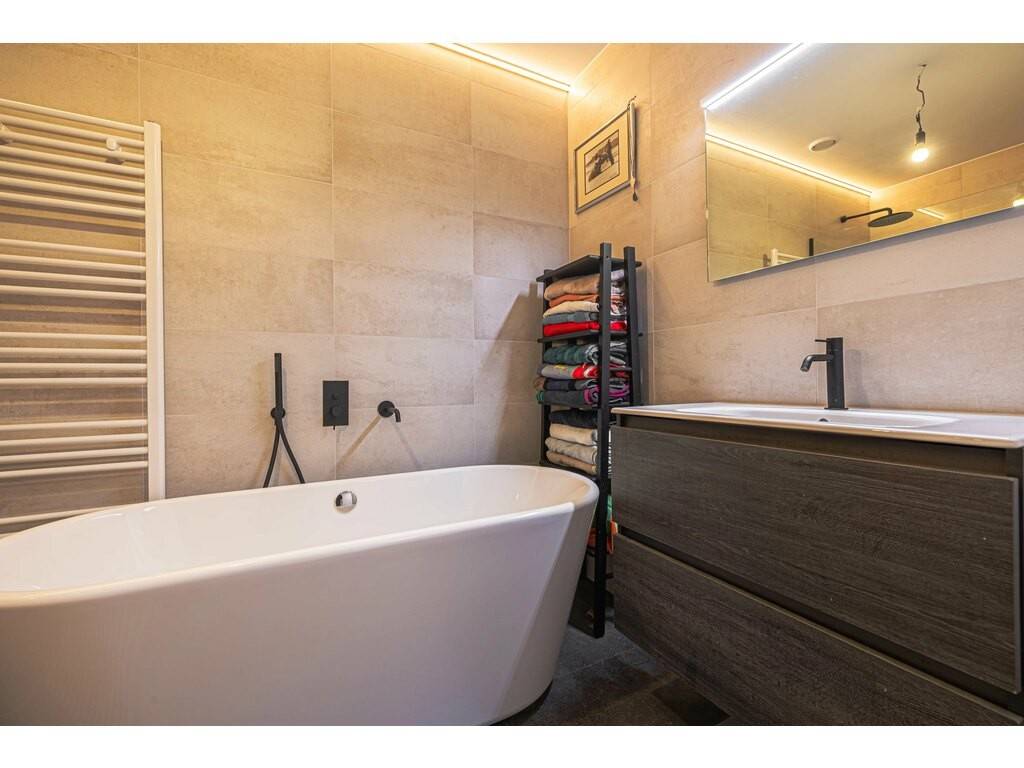 Badezimmer mit Badewanne und eleganter begehbarer Dusche