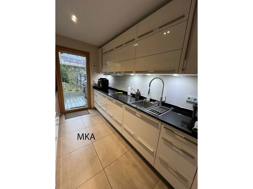 Möbliertes Reihenhaus zu vermieten. Das Haus befindet sich in der Gemeinde Flaxweiler. Die Aufteilung ist wie folgt: Erdgeschoss: Eingangsbereich mit Einbauschrank, Garage für ein Auto und Außenstellplatz, Waschküche mit Waschmaschine und Trockner, Heizraum mit Wärmepumpenkessel, Keller, separates WC. 1. Obergeschoss (Gartenebene): Große Küche, Esszimmer mit direktem Zugang zur Terrasse und zum Garten, Wohnzimmer mit Arbeitsbereich, separates WC. 2. Obergeschoss: 2 Schlafzimmer, Ankleidezimmer, Duschbad mit ebenerdiger Dusche, großem Waschbecken und Infrarotkabine, separates WC. Verkaufsdetails: - Maklergebühren: Nicht angegeben - Monatliche Nebenkosten: 0,00 € - Kaution: 0,00 € - Wärmedämmung: B