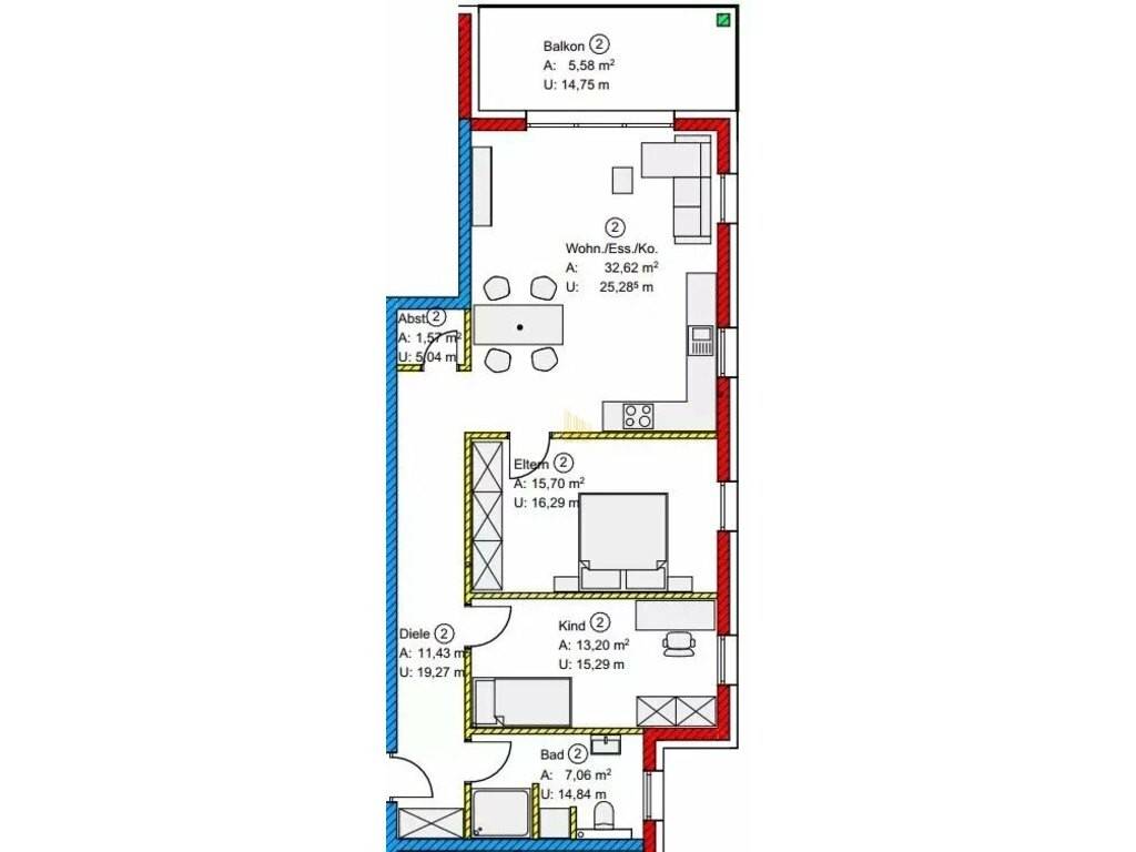 Die Wohnung bietet eine Wohnfläche von ca. 86,05 m² und überzeugt durch einen großzügigen, lichtdurchfluteten Grundriss. Zwei komfortable Schlafzimmer machen die Einheiten ideal für Paare, kleine Familien oder Berufspendler.