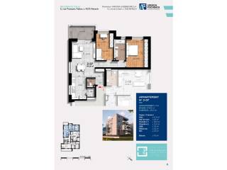 En façade principale se trouvent l'entrée pour piétons et l'accès au garage commun. La rési­dence comporte un sous-sol, un rez-de-chaus­sée et quatre étages. Au sous-sol nous retrou­vons les emplacements privatifs, les caves, les locaux communs et autres locaux techniques. Les étages et le rez-de-chaussée sont réservés à l‘habitation ou toute destination admise par les règlements administratifs afférents.