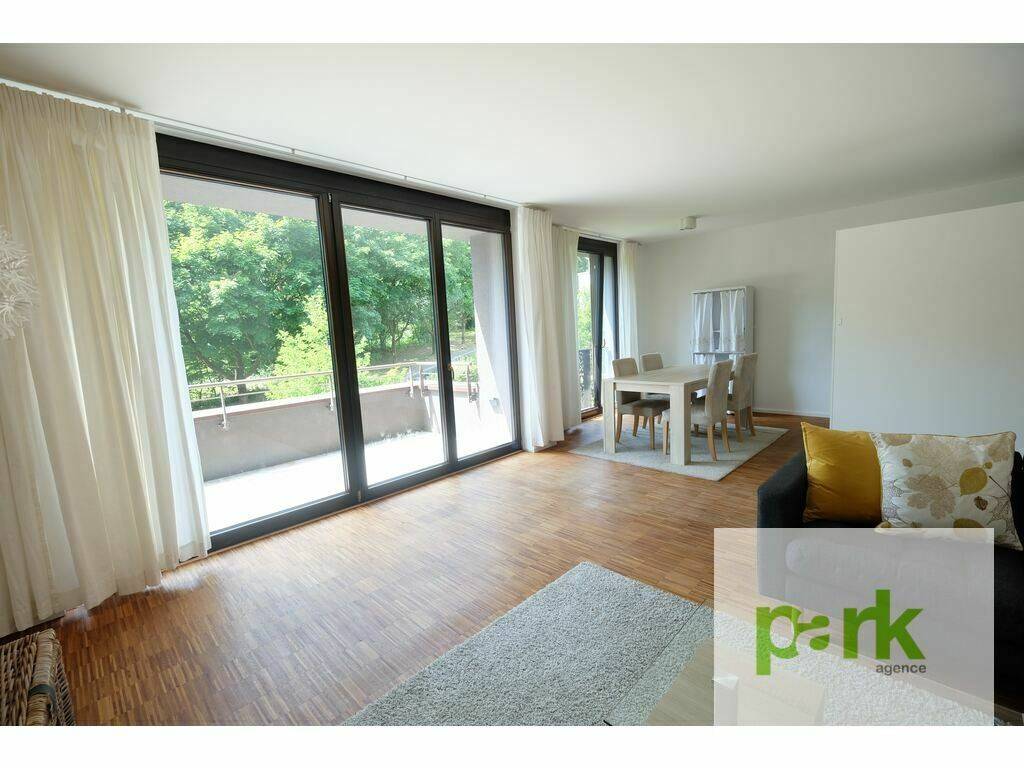 Luxembourg-Mühlenbach, 9, rue de Mühlenbach, en pleine nature (Forêt de Bambesch) et à 10 minutes du centre-ville, bel appartement (numéro A5) de 78 m2 habitables + 7 m2 de terrasse, entièrement meublé, aux finitions de haut standing, au premier étage avec ascenseur et comprenant :