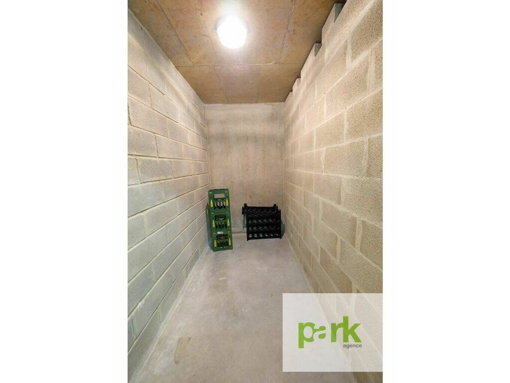 Entrée avec placards, living avec sortie terrasse, placards, cuisine équipée ouverte sur le living, une chambre à coucher avec placards intégrés, salle de douche, WC et lavabo, machine à laver le linge à la buanderie commune. Un emplacement de parking, une cave.