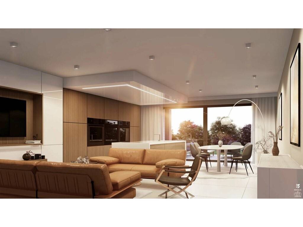 Das 2-Zimmer-Apartment befindet sich im Gartengeschoss und verfügt über eine Katasterfläche von 133,15 m2 (127,07 m2 Wohnfläche), zwei Terrassen (+- 4,00 m2 und +-22,00 m2) und einen Garten von 145,80 m2.