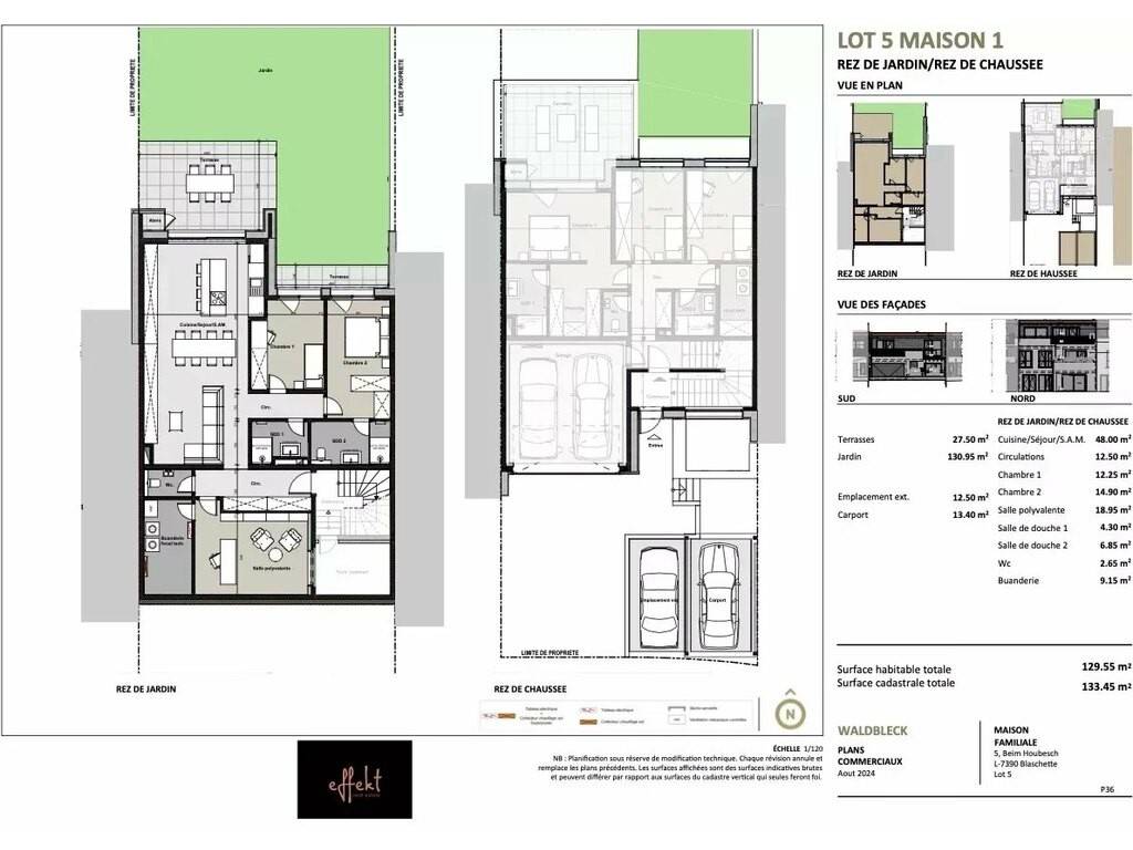 - Eine Verteilungshalle - Ein Wohn- und Esszimmer mit offener Küche von 48,00 m². - Zugang zur 22,00 m² großen Terrasse sowie zu einem 130,95 m² großen Garten. - Ein Elternschlafzimmer mit Duschbad und Zugang zur Terrasse. - Ein Schlafzimmer von 12,25 m² mit Zugang zum 4 m² großen Balkon. - Ein Mehrzweckbereich von 18,95 m² (Büro, Kinoraum, Fitnessraum, Ankleidezimmer oder Raum mit vorübergehender Schlafmöglichkeit usw.). - Ein Duschraum - Ein separates WC - Ein Wasch- und Technikraum mit der Möglichkeit von Einbauschränken unter der Dachschräge