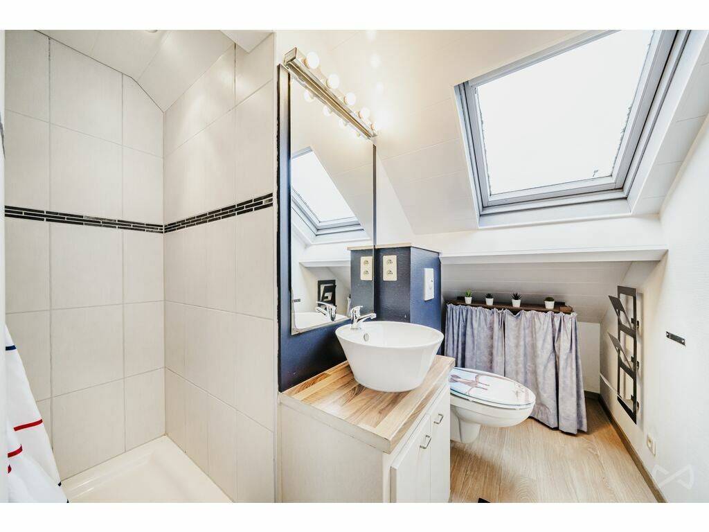 Upstairs: spacious landing with space for a relaxation area, two large bedrooms and a shower room. The basement includes a cellar and a boiler/laundry room.
