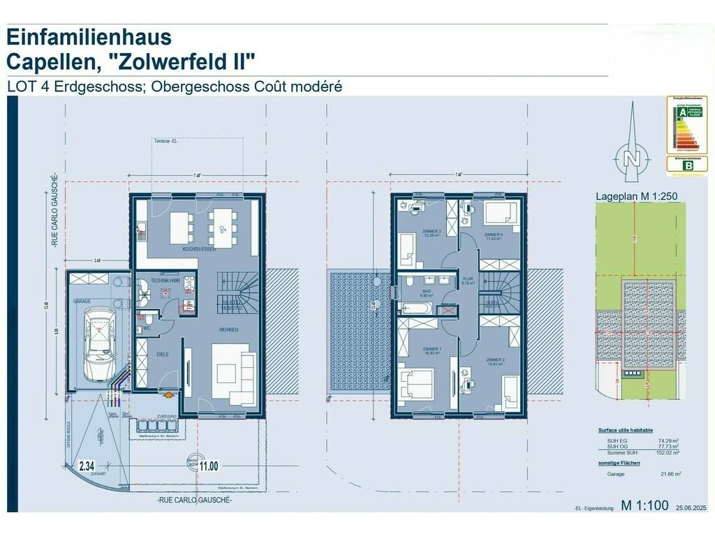 Discover this semi-detached single-family home located in the heart of the “Zolwerfeld II” development in Capellen, offering modern comfort, high-quality construction, and an exceptional living environment.