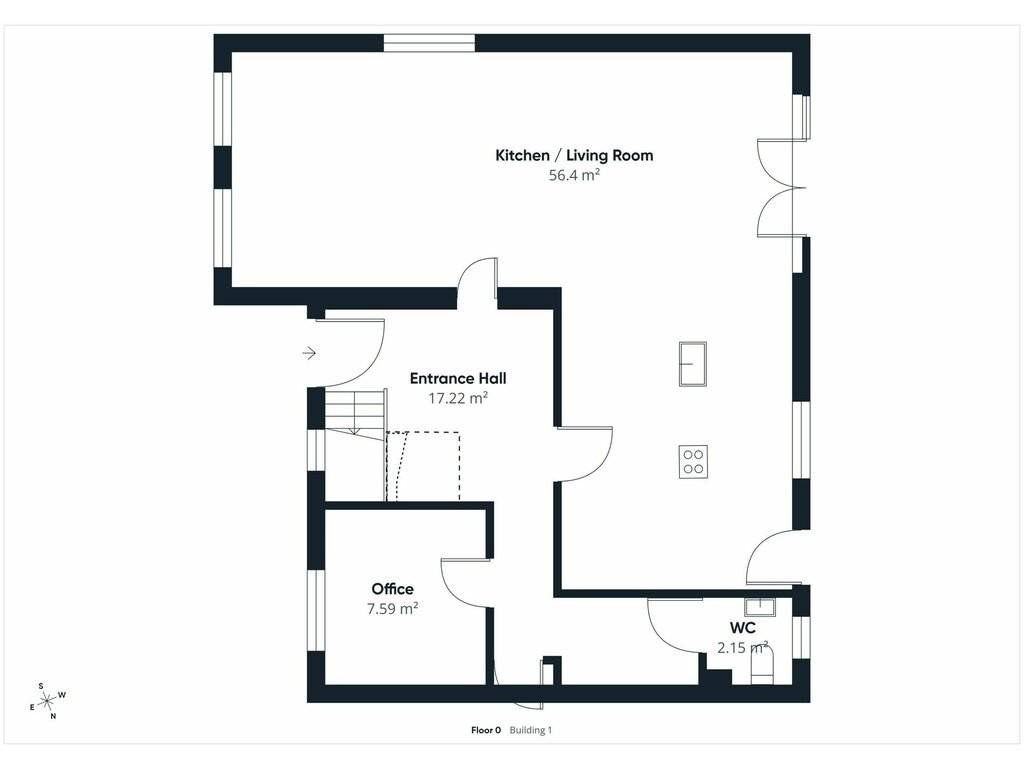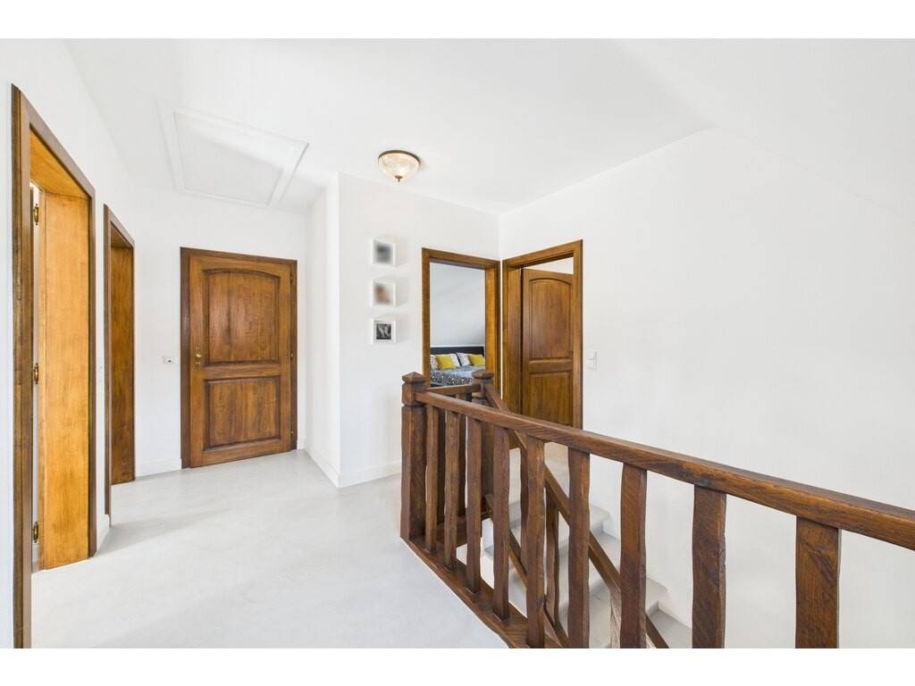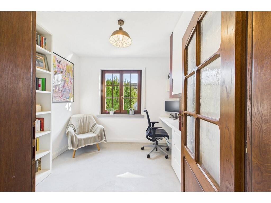 Ground floor: entrance hall and corridor leading to all rooms on this level (17.2 m²) - spacious living area comprising a lounge, dining area and fitted kitchen (56.4 m²) with access to the terrace and garden - study (7.6 m²) - Separate WC (2.2 m²) - 2-car garage (34.7 m²) with storage space - Laundry room (8 m²) with access to the terrace and garden - Cellar (7.7 m²)