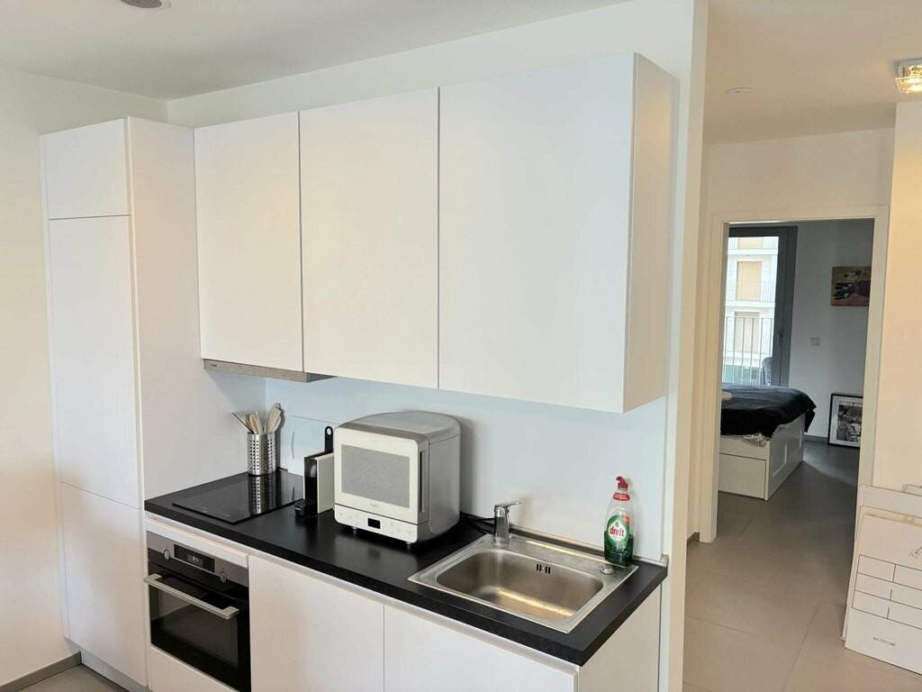 Wunderschöne unmöblierte Wohnung im 2. Stock mit Aufzug, die sich in einer Residenz mit hochwertigen Ausstattungen befindet. Sie besteht aus einer Eingangshalle, einem Wohnzimmer mit offener Küche und direktem Zugang zu einer Terrasse, einem großen Schlafzimmer, einem Duschbad und einem WC.