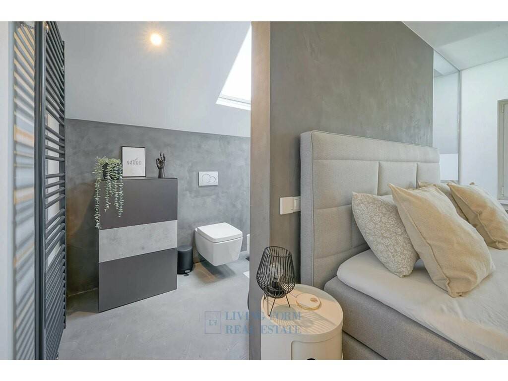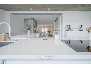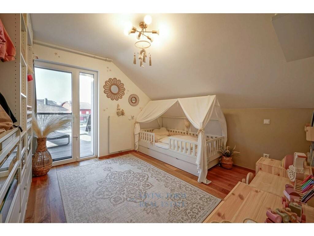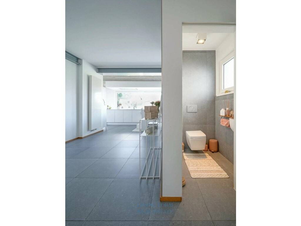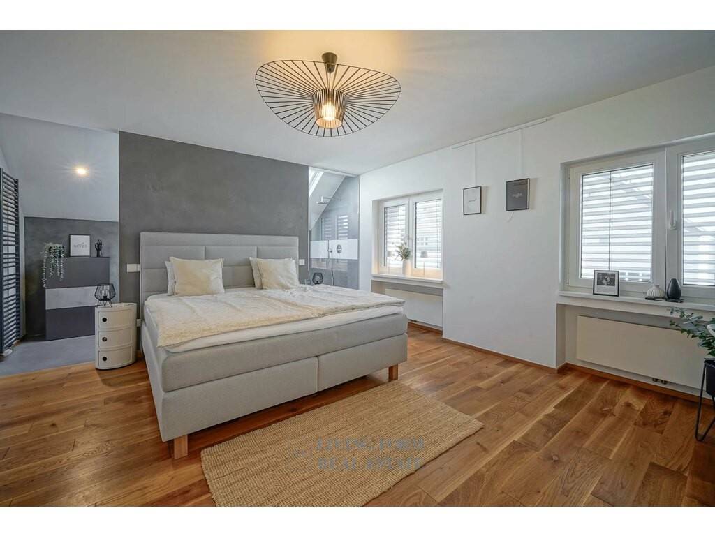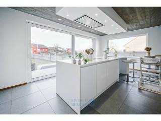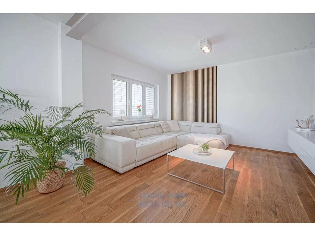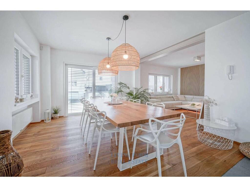 Zu den hochwertigen Ausstattungsmerkmalen gehören unter anderem dreifach verglaste Fenster, Massivparkett in den Wohnräumen, Betondecken mit Stahlverstärkungen sowie eine Treppe aus Naturstein.