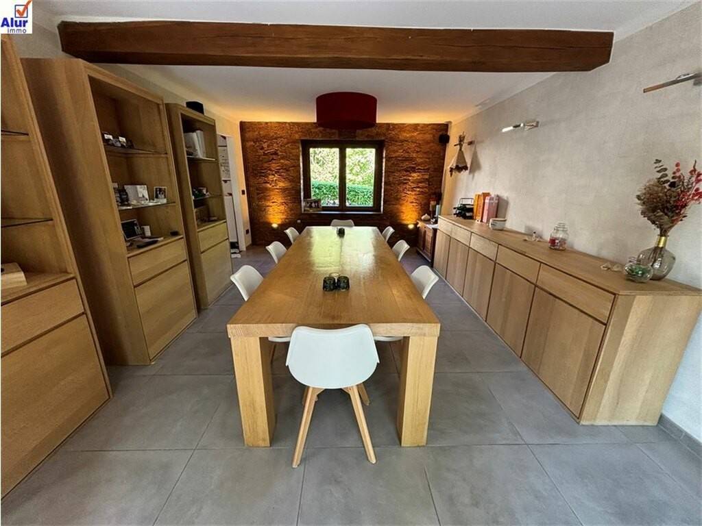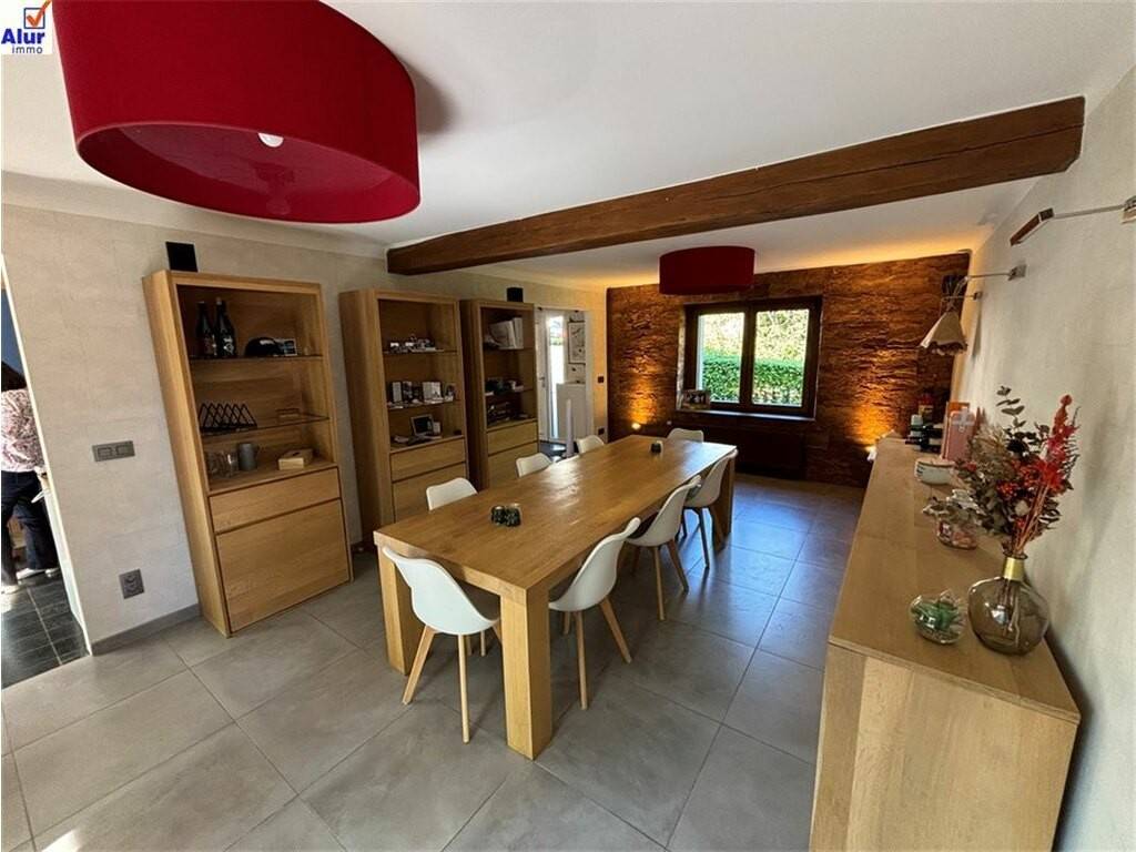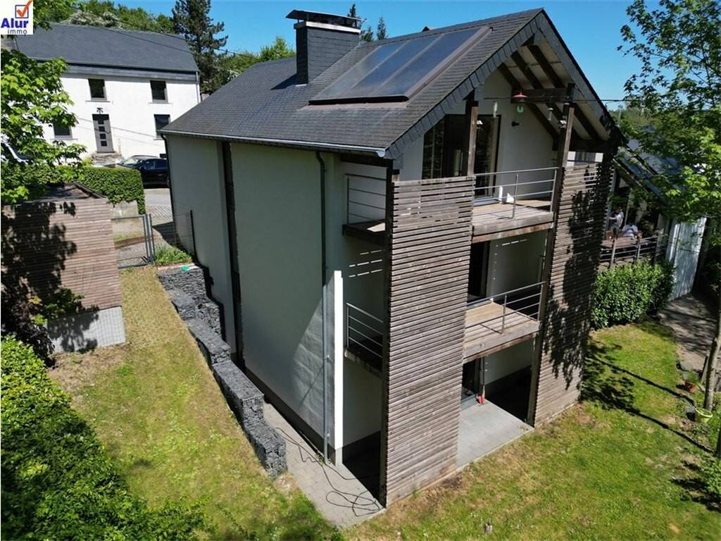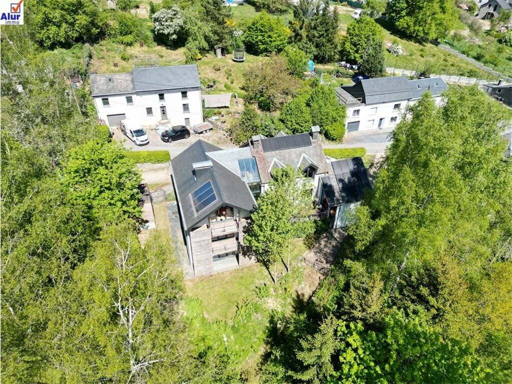 A vendre à Martelange, 9, rue de la Tannerie superbe et spacieuse maison de standing d'une superficie totale de 390 m² ( 330 m² habitables) comprenant 6 chambres, un séjour d'une superficie de 57 m², 2 salles de bain, cuisine équipée, bibliothèque, garage pour 2 voitures, 2 terrasses, jardin orientés au sud, sur un terrain de 8 ares 26ca.\nLa construction de cette maison date de 1993 et un second volume a été annexé en 2008.\nCet immeuble peut être considéré comme une habitation unique ( avec alors 6 chambres) ou une habitation avec un appartement 1 chambre d'une superficie de 70 m ²avec son entrée et des emplacements de parking indépendants.\nPEB C : bonne isolation du bâtiment, châssis double vitrage, toiture isolée en ardoises naturelles, panneaux photovoltaïques.\nMaison aménagée avec goût et avec des matériaux de qualité.\nTrès belle situation dans une rue calme, voie sans issue se terminant vers l'entrée de la forêt toute proche, à l'arrière du parc de la Tannerie, super lieu de promenade et de détente.\nBonne situation géographique, avec accès sur la N4, vers Arlon, Luxembourg ou Bastogne, Bruxelles.\n\nBIEN D'EXCEPTION, A VOIR ABSOLUMENT pour les amateurs de belles demeures dans un environnement naturel et verdoyant.\nPrix : 698.000 € - réduction des droits d'enregistrement à 3% pour les acquéreurs non propriétaires d'un bien d'habitation.\n