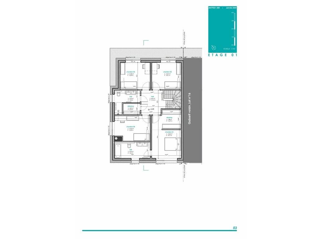LOT 17: Maison unifamiliale en bande sur un terrain de 5,19 ares avec une surface habitable de +/- 160 m2 et une surface totale de +/-191m2 comprenant:
