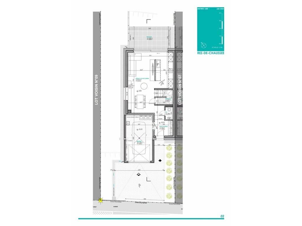 LOT 08: Maison unifamiliale en bande sur un terrain de 4,14 ares avec une surface habitable de +/- 112 m2 et une surface totale de +/-140m2 comprenant: