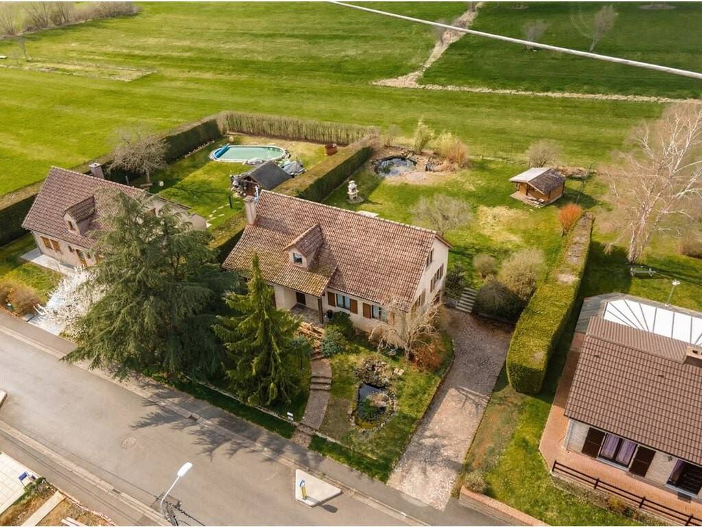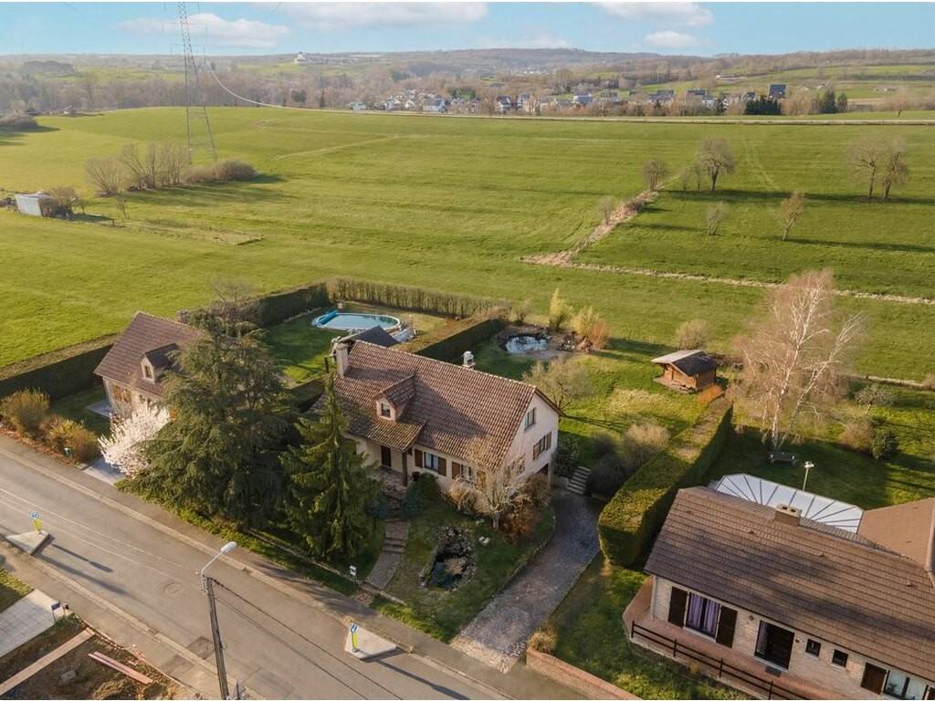 W Immobilière offers this beautiful detached house located in the village of Guerlange (Aubange), just a few minutes from the Luxembourg border. The property features generous volumes and a pleasant living environment. On the ground floor, you will find an entrance hall, a separate toilet, a bright and spacious living area with lounge and dining room, a fully equipped kitchen, two bedrooms, an office and a bathroom. Upstairs, the night hall leads to two large bedrooms and attic spaces offering additional storage. The basement includes a garage and cellars. Set on a beautiful plot of 11 ares, the property benefits from a lovely garden with open views over the countryside, ideal for enjoying peace and nature. Located in a quiet residential area, this house offers a great quality of life close to all amenities and the Luxembourg border. A great opportunity for families looking for space and comfort.